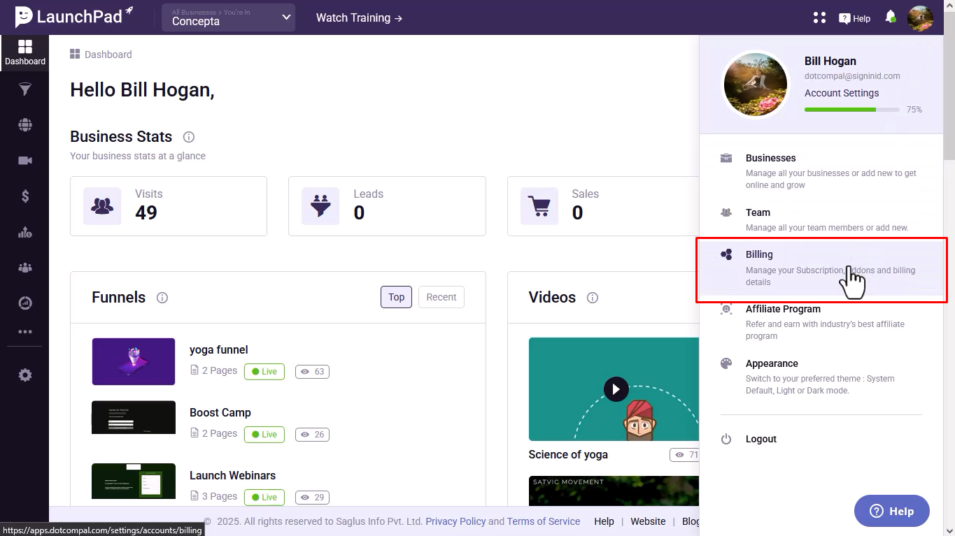 Steps for Navigating Your Billing, Usage, and Transactions in DotcomPal
