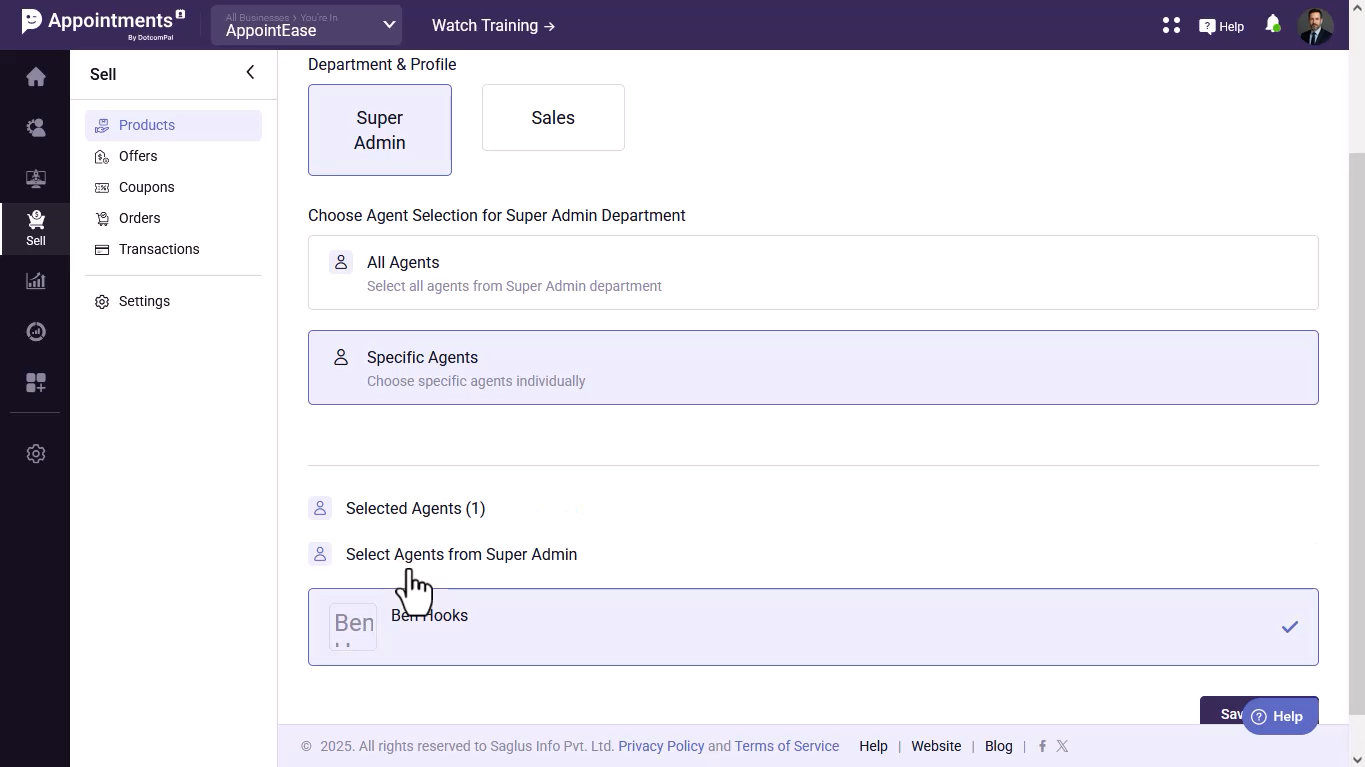 - Assign the department and agent(s) who will handle the bookings.
