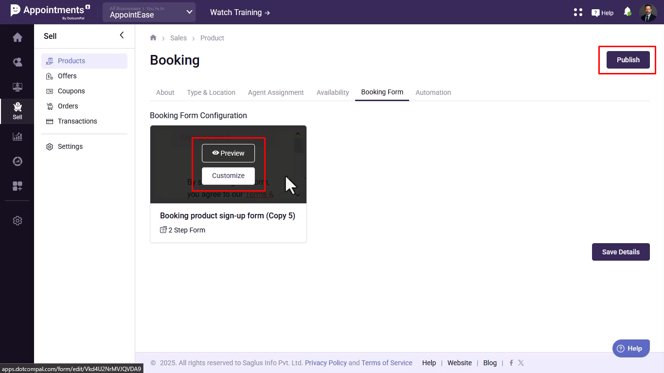 - Preview and customize the booking form, then publish the booking product.