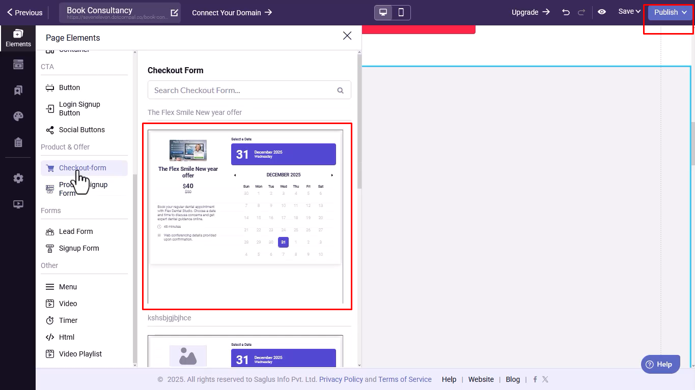- Add the checkout form to your sales funnel, publish it, and start accepting bookings.