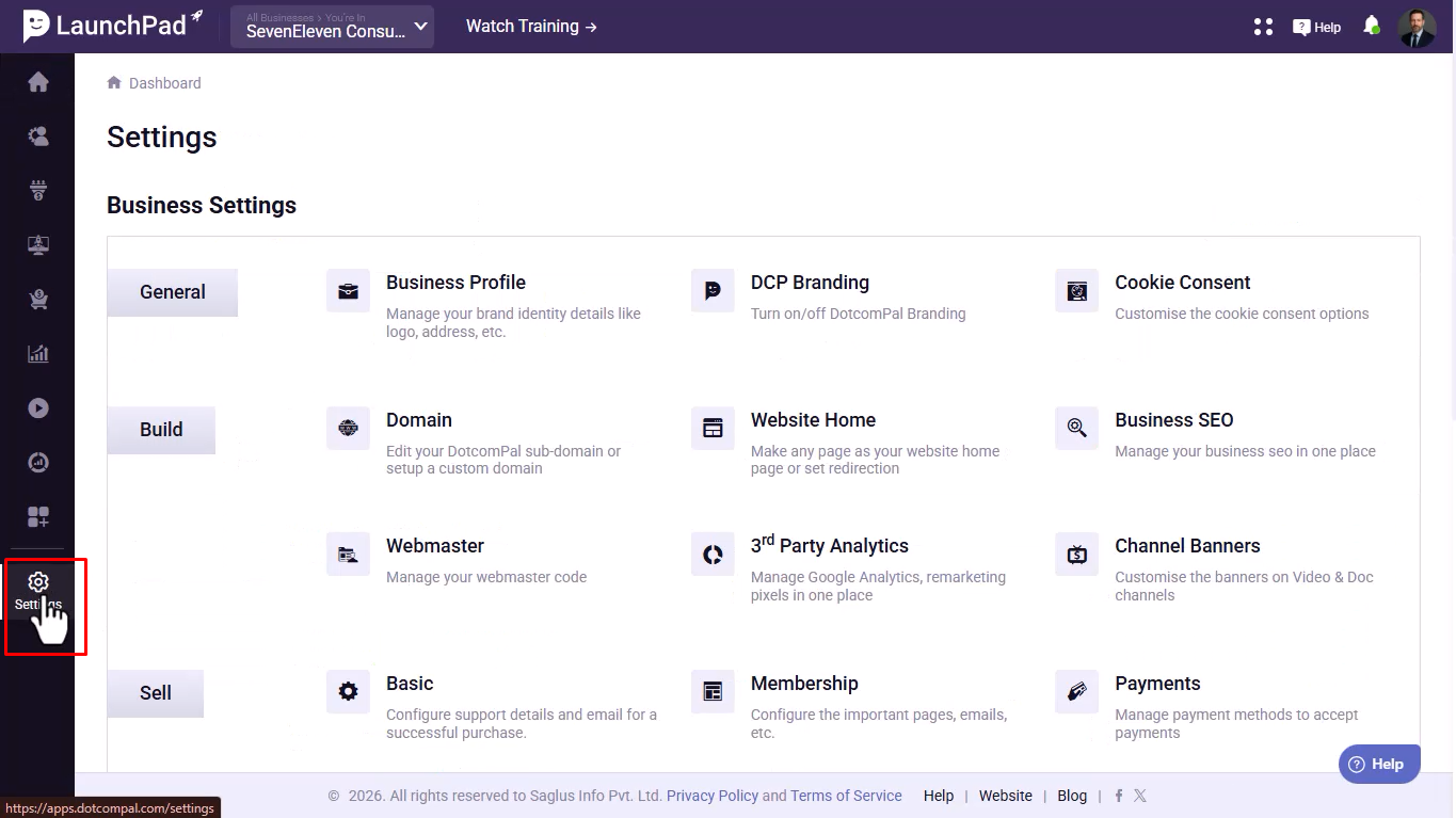 From the left-hand side vertical menu, click on the Settings icon.